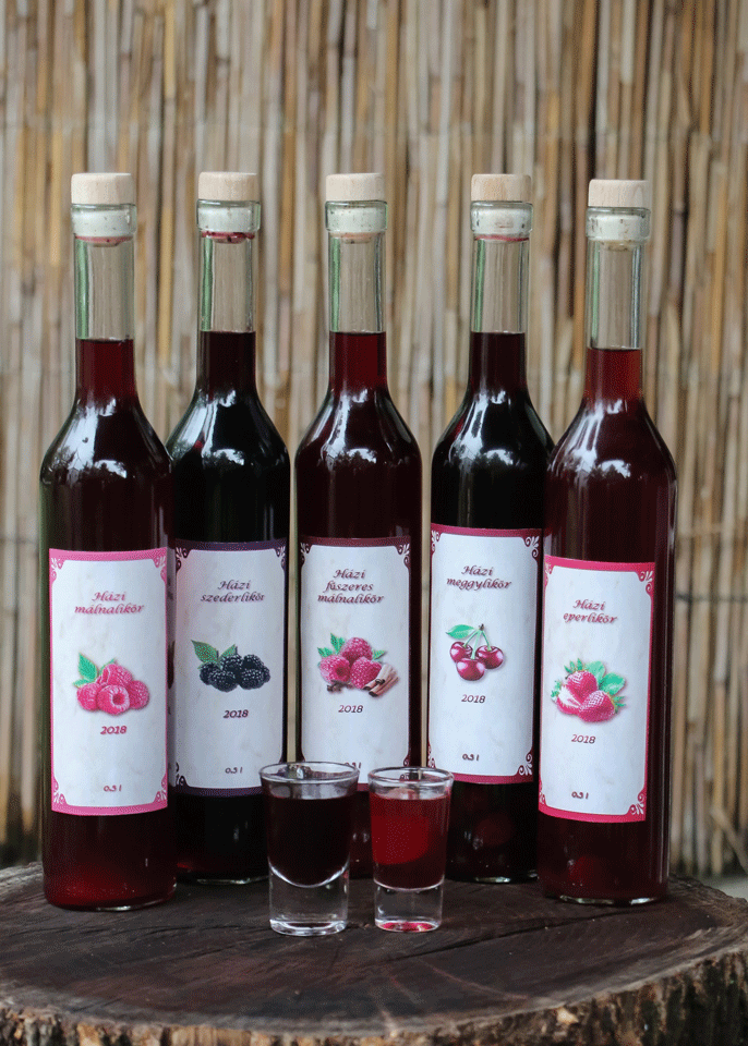 Málna, fűszeres málna, eper, szeder, meggy ízben kóstolhatók meg a likőrök.