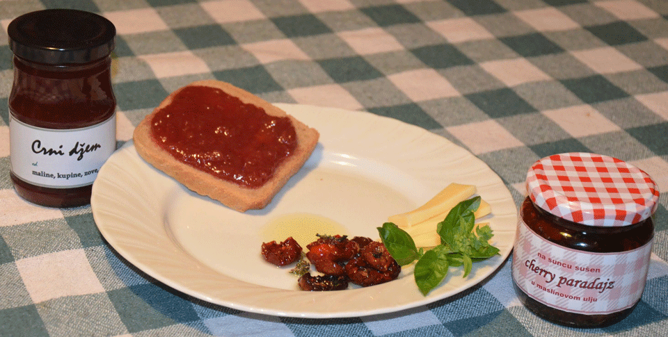 U porodičnoj bašti uzgajam raznoliko povrće, voće, začinsko i lekovito bilje, od 2013. godine po svim principima organske proizvodnje. Najveći deo bašte je okupiralo desetak sorti čeri paradajza i čili paprika, čije selekcionisanje traje već desetak godina, a od čijih plodova spremam nekoliko vrsta umaka, ili ih sušim na suncu i pakujem u maslinovo ulje uz dodatak začinskog bilja.